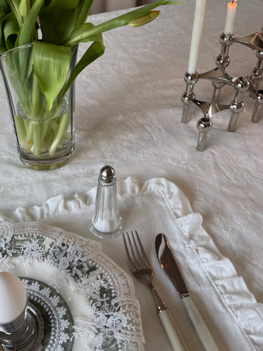 Loving Laces er Blåmsts blonde kollektion af bordtekstiler – med dækkeservietter, stofservietter,...