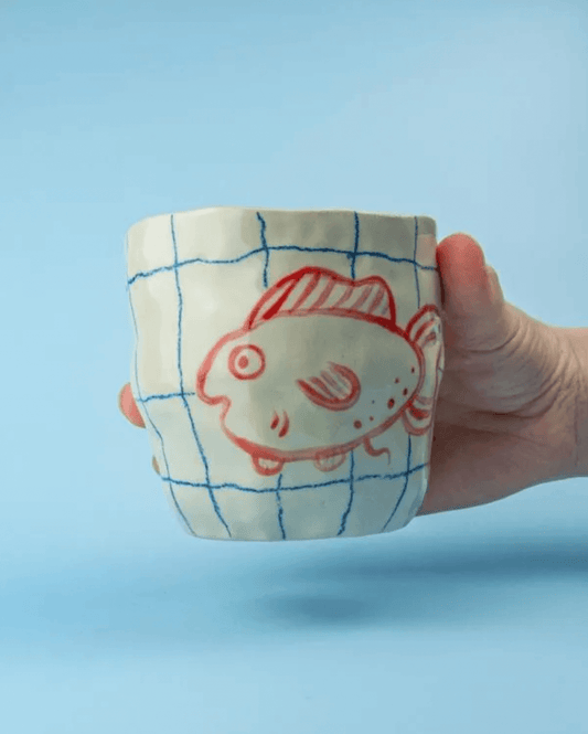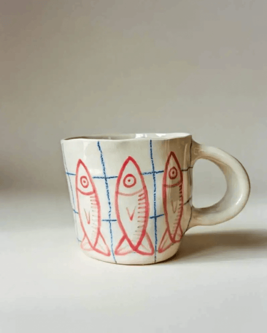 Retro kaffeglas med hvid hank