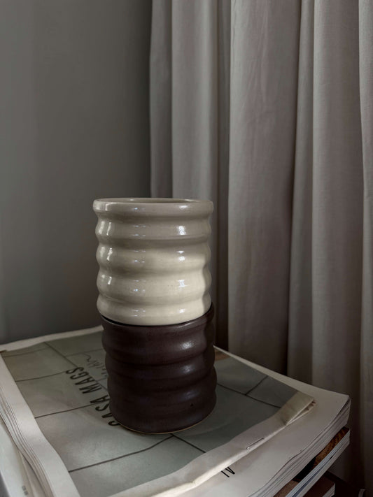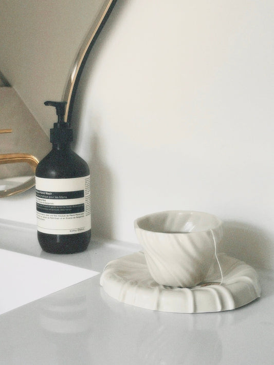 Tidevandskoppen er inspireret af havets bevægelser og har et organisk, bølget design, der føles som en lille luksus i hverdagen. Den er perfekt til både kaffe og te og ligger godt i hånden, mens den tilføjer et strejf af naturlig skønhed til din borddækning. Med denne kop kan du nyde hver tår med ro og fordybelse.
