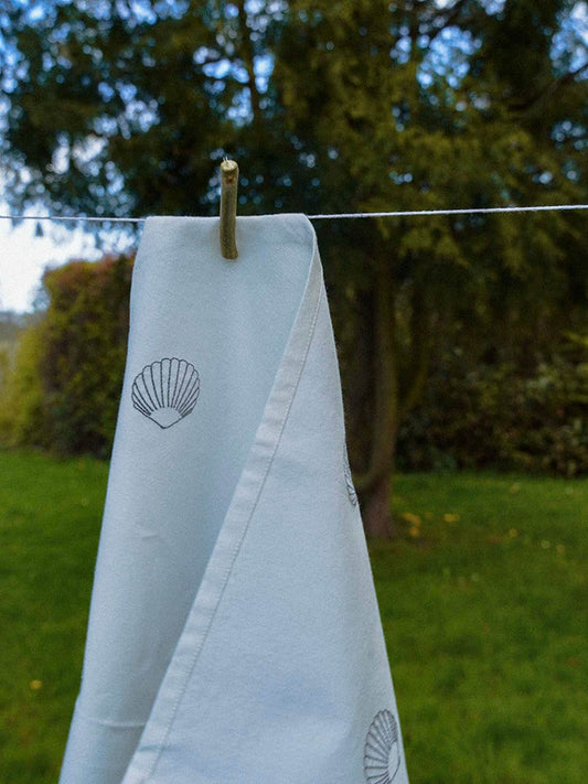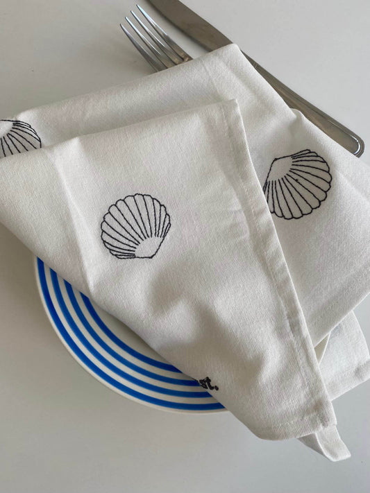 Kollektionen er skabt til at gøre borddækningen lidt smukkere, lidt blødere, lidt mere sanselig. En dug med broderede muslinger kan gøre en simpel hverdagsmiddag til en særlig stund. En serviet med de fineste sting kan skabe et øjeblik af nærvær. Et viskestykke kan være mere end funktionelt – det kan være en lille påmindelse om havets evige rytme.