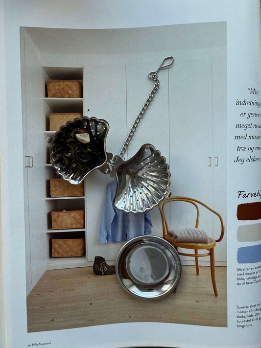 Bag kollektionen står Cille, som har tegnet og designet alle muslingemønstrene med stor kærlighed til detaljen. Hvert mønster er først håndtegnet på papir, før det bliver omsat til broderi. Det giver en levende og organisk fornemmelse – præcis som de muslinger, vi samler op på stranden og gemmer i lommen som små skatte.
