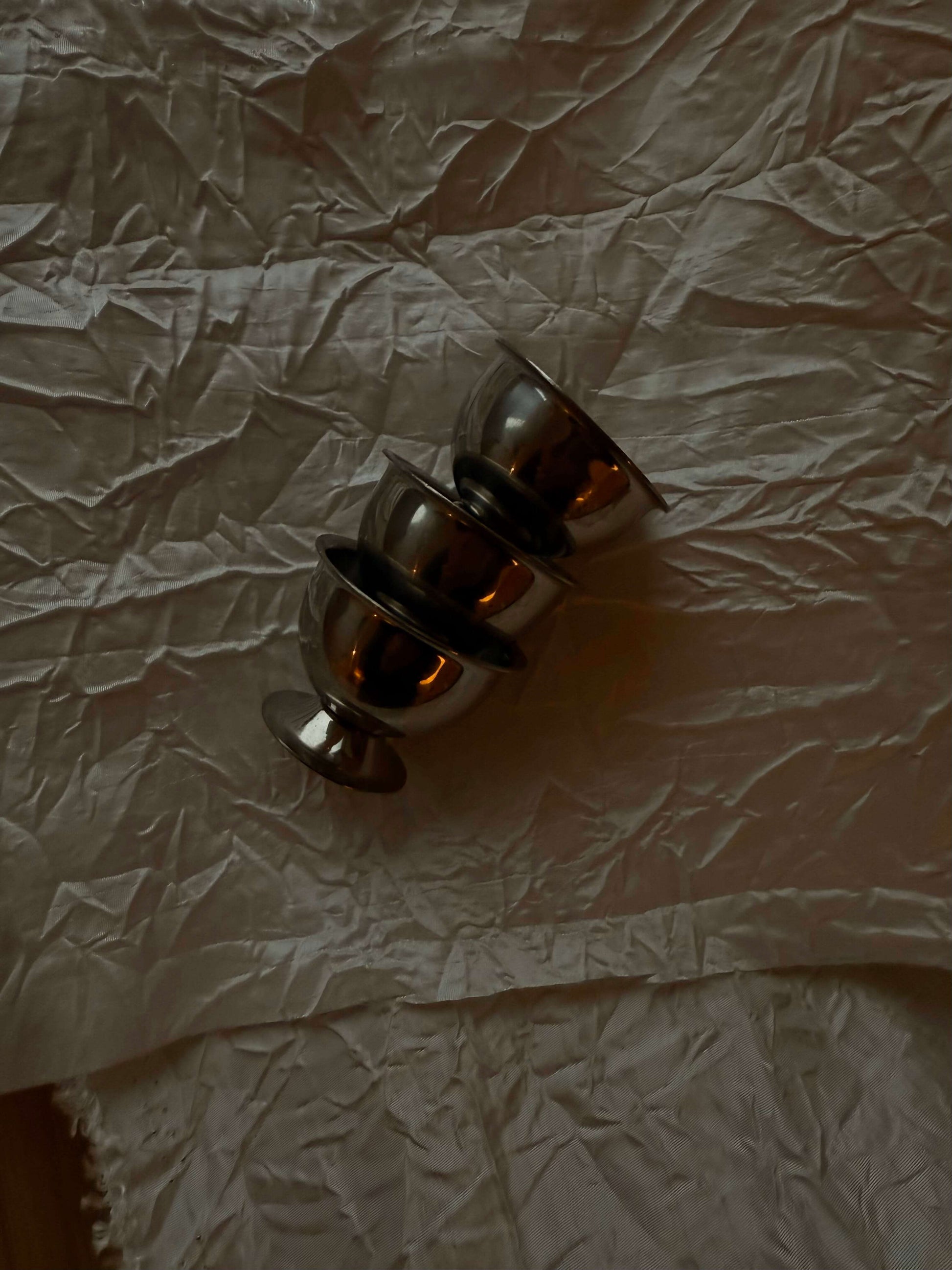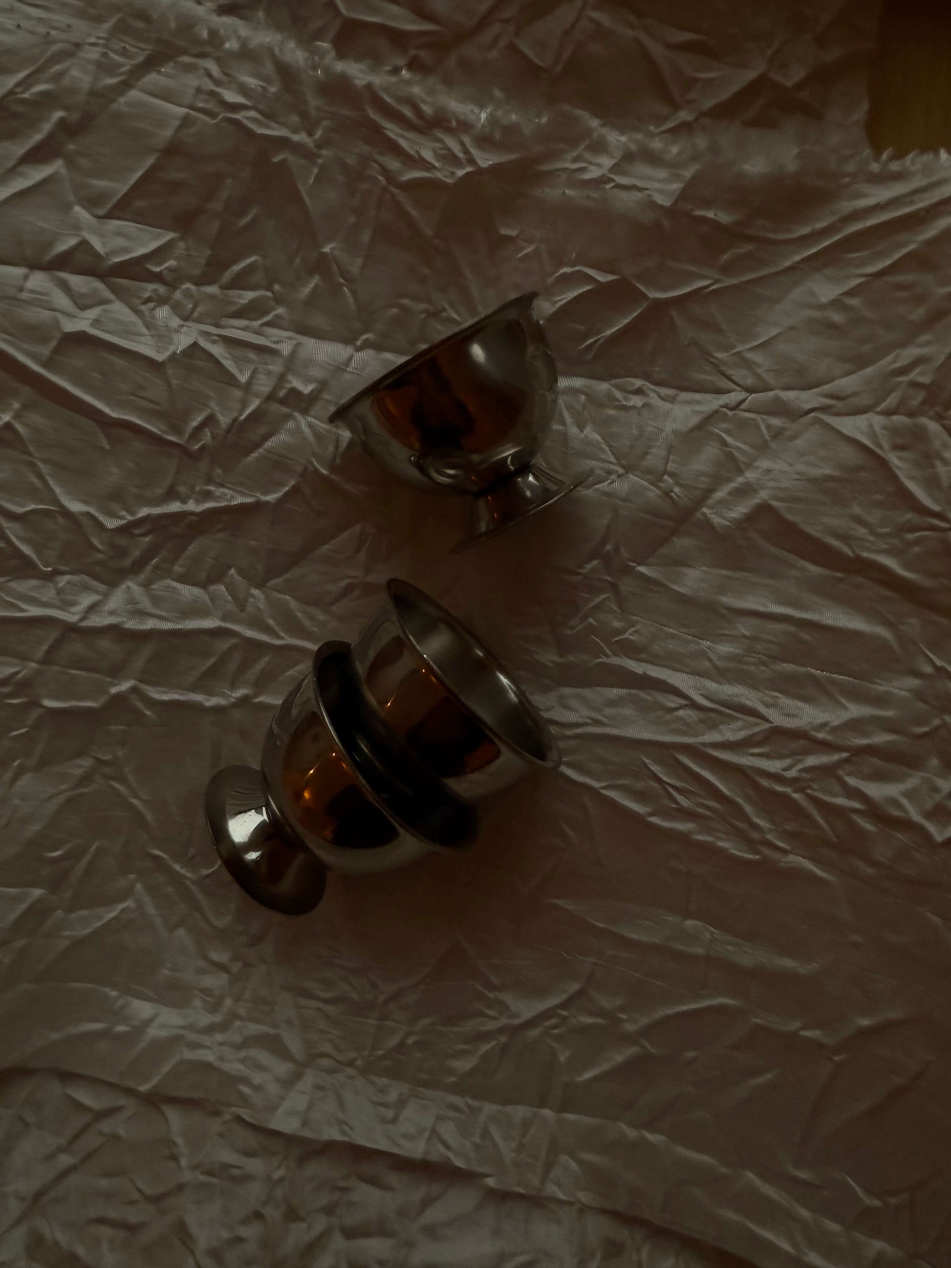 Enkle og stilrene æggebægre i rustfrit stål, der kombinerer funktion med et tidløst design. Perfekte til morgenbordets blødkogte æg, men også elegante nok til at indgå i en veldækket brunch eller som del af en klassisk borddækning. Stålet giver bægrene en diskret glans og gør dem lette at holde rene – samtidig med at de er robuste nok til daglig brug.