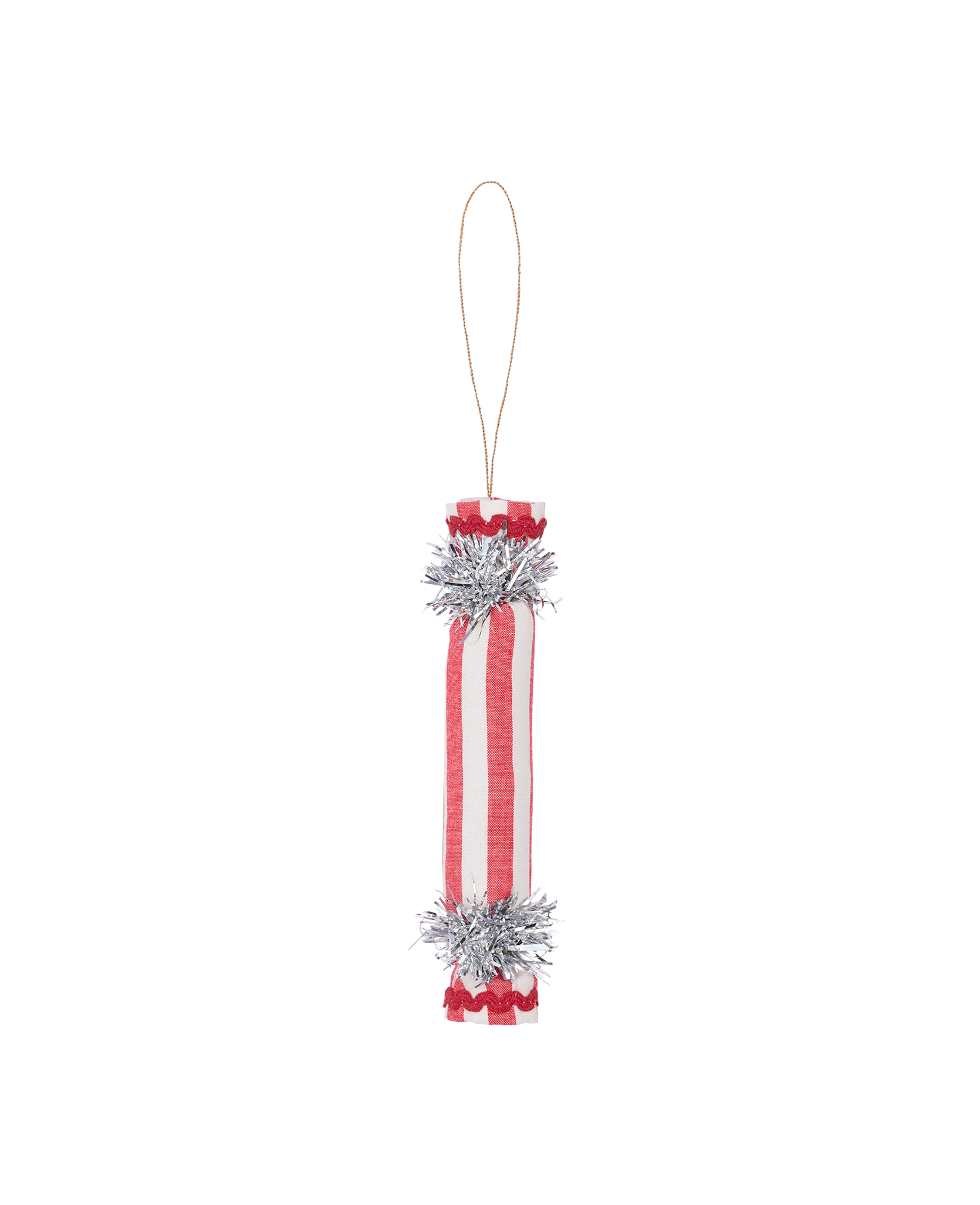 Crackers Ornament er lavet af rester af bomuld og er pyntet med et smukt bånd og glitrende sølv-lurex i enderne. Den er perfekt til at pynte det mest festlige juletræ og sprede julestemning i hele huset!