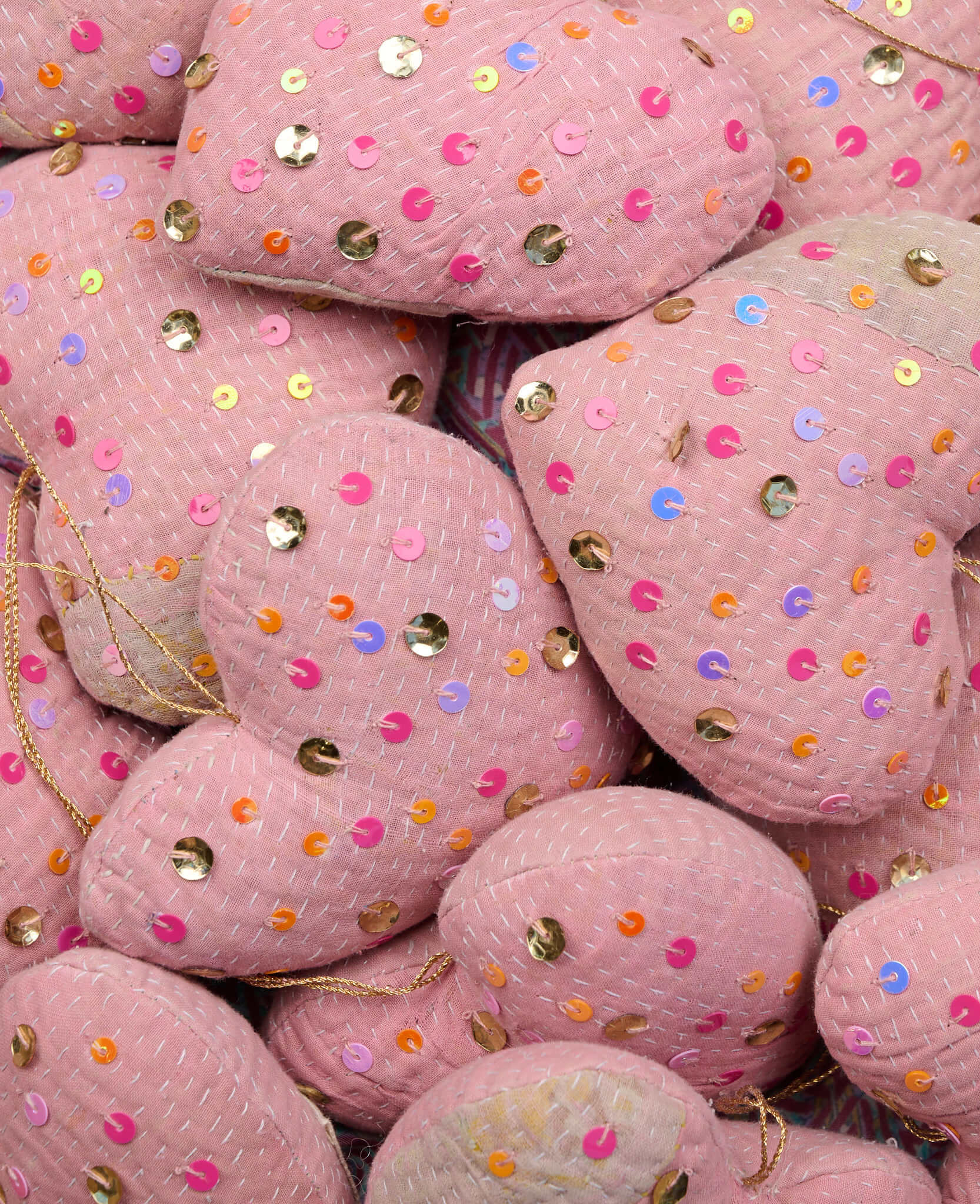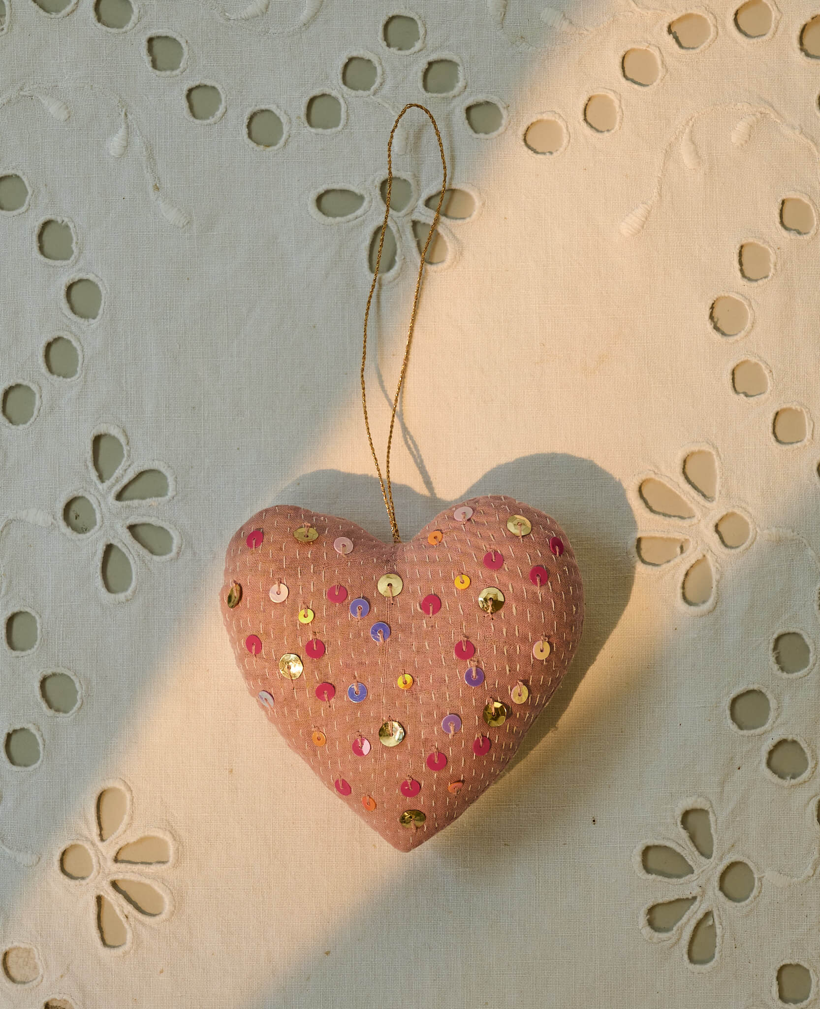 Beautiful Christmas hearts from Sissel Edelbo ✨ All products are handmade and made from leftover materials from their clothing production 🌲
