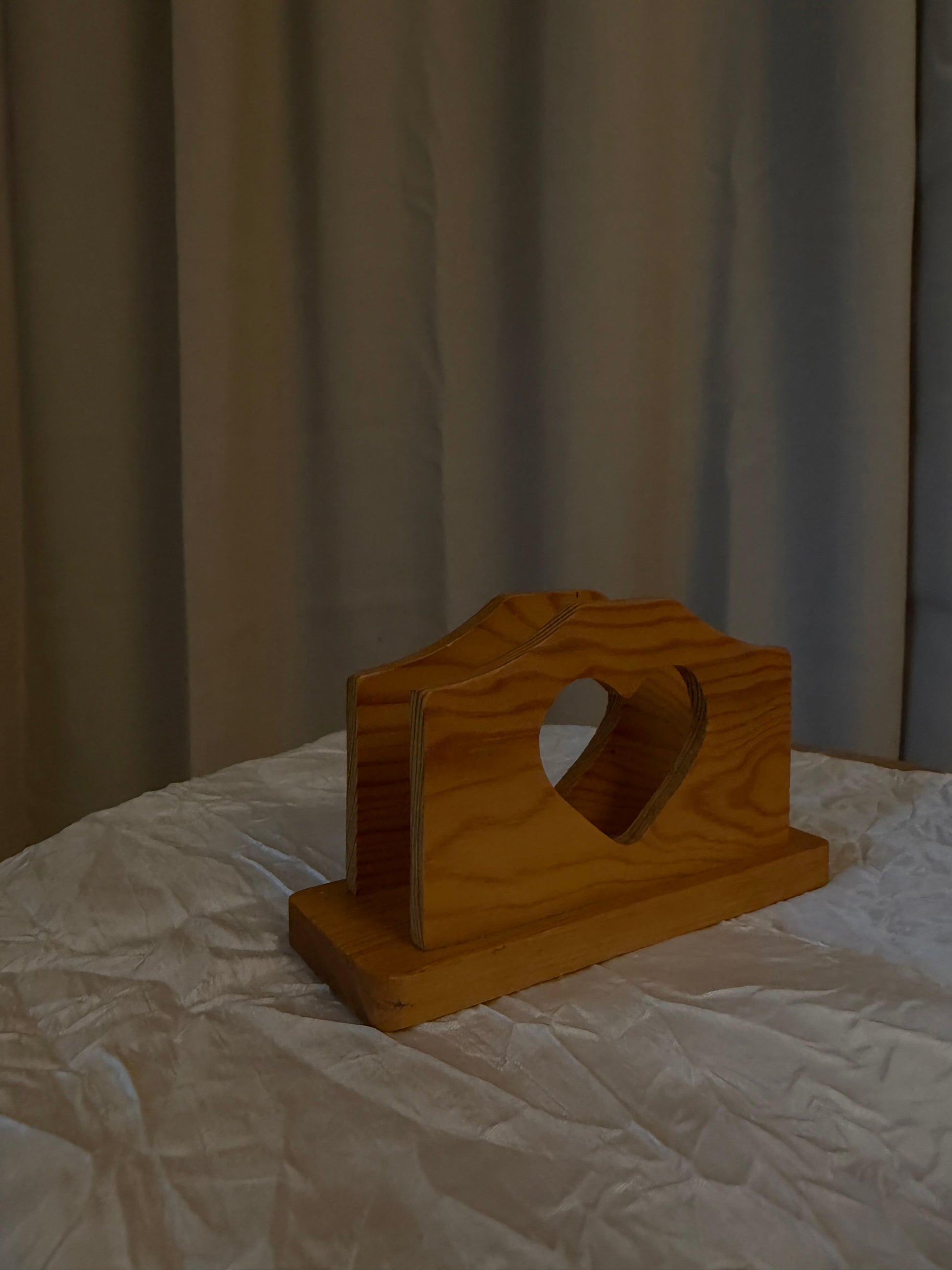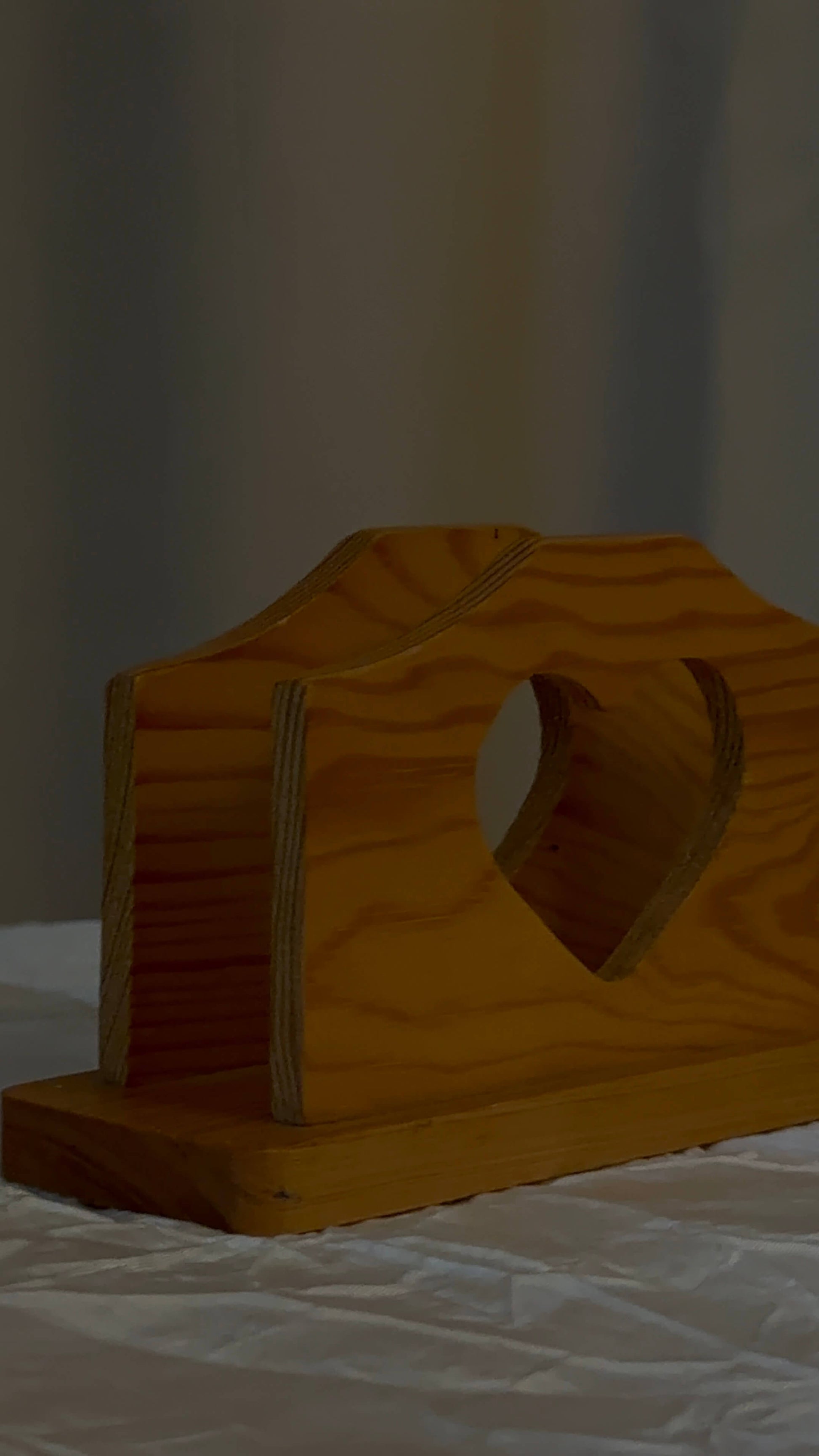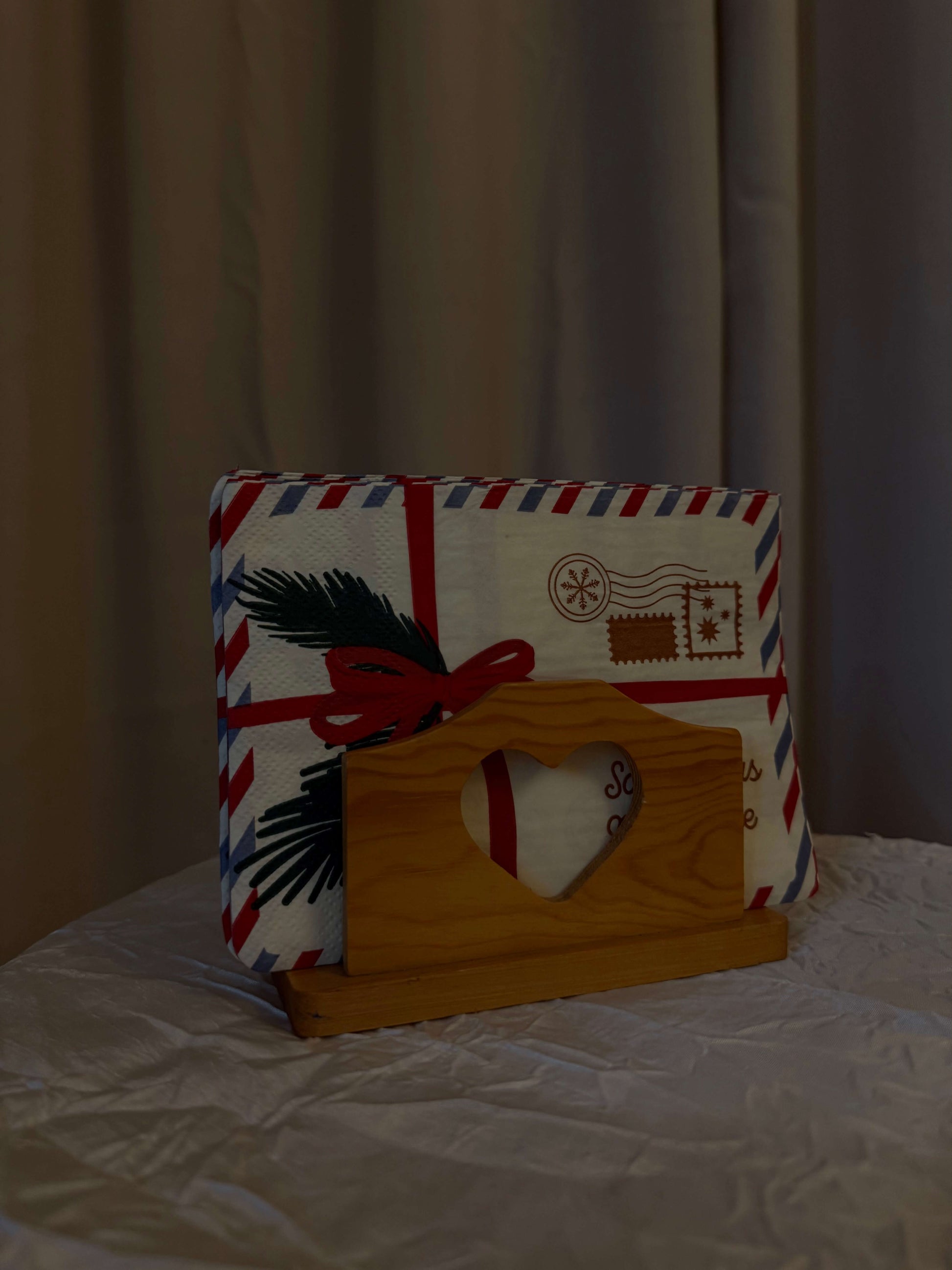 En charmerende og personlig servietholder i træ, hvor et fint udhulet hjerte pryder fronten. Perfekt til at samle servietter på bordet eller køkkenbordet, samtidig med at den tilfører varme og hygge til indretningen. Det udhulede hjerte giver et poetisk touch, som gør selv en lille hverdagshandling til noget særligt.