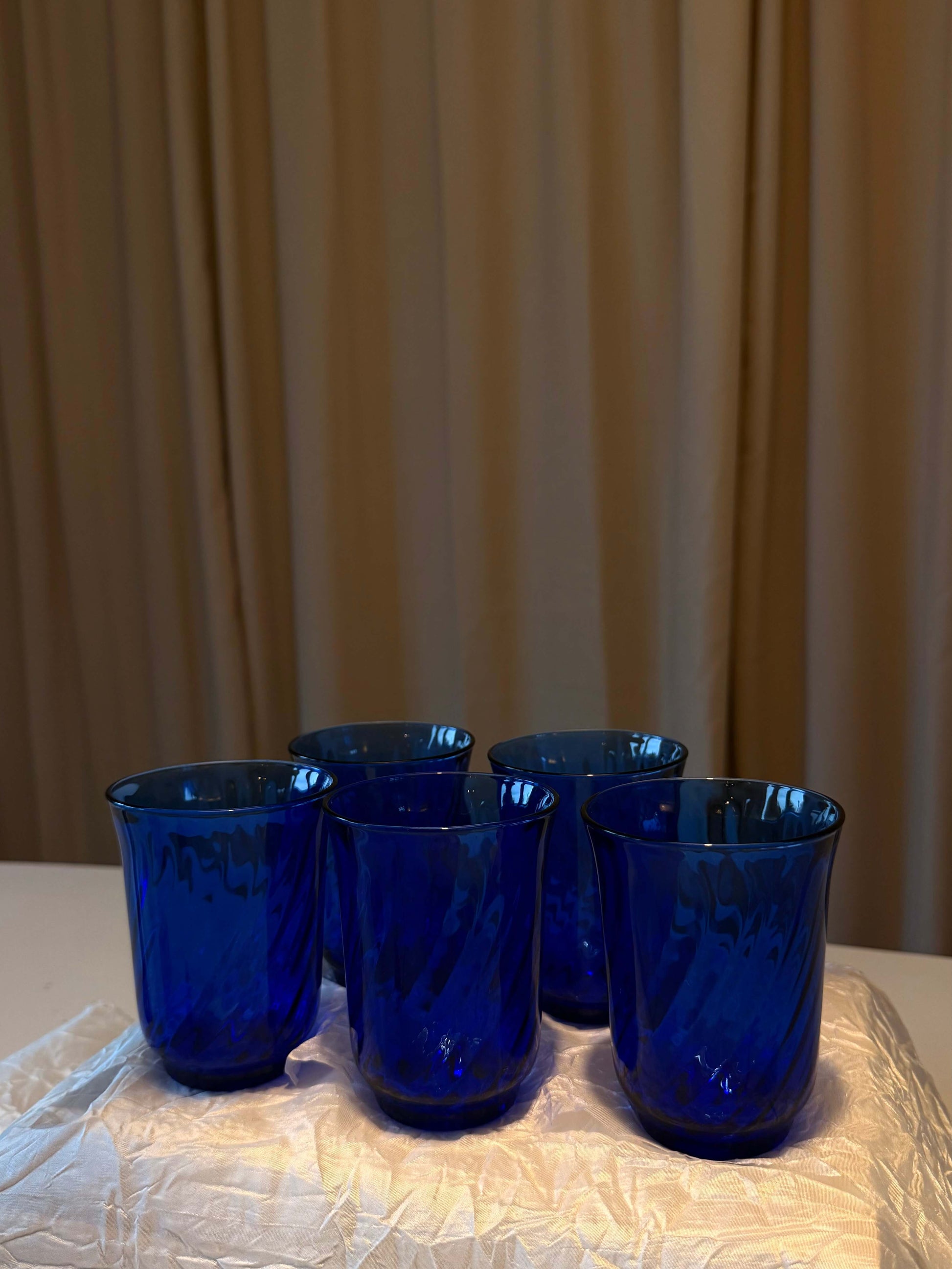 Sæt af blå vandglas med kurvet form