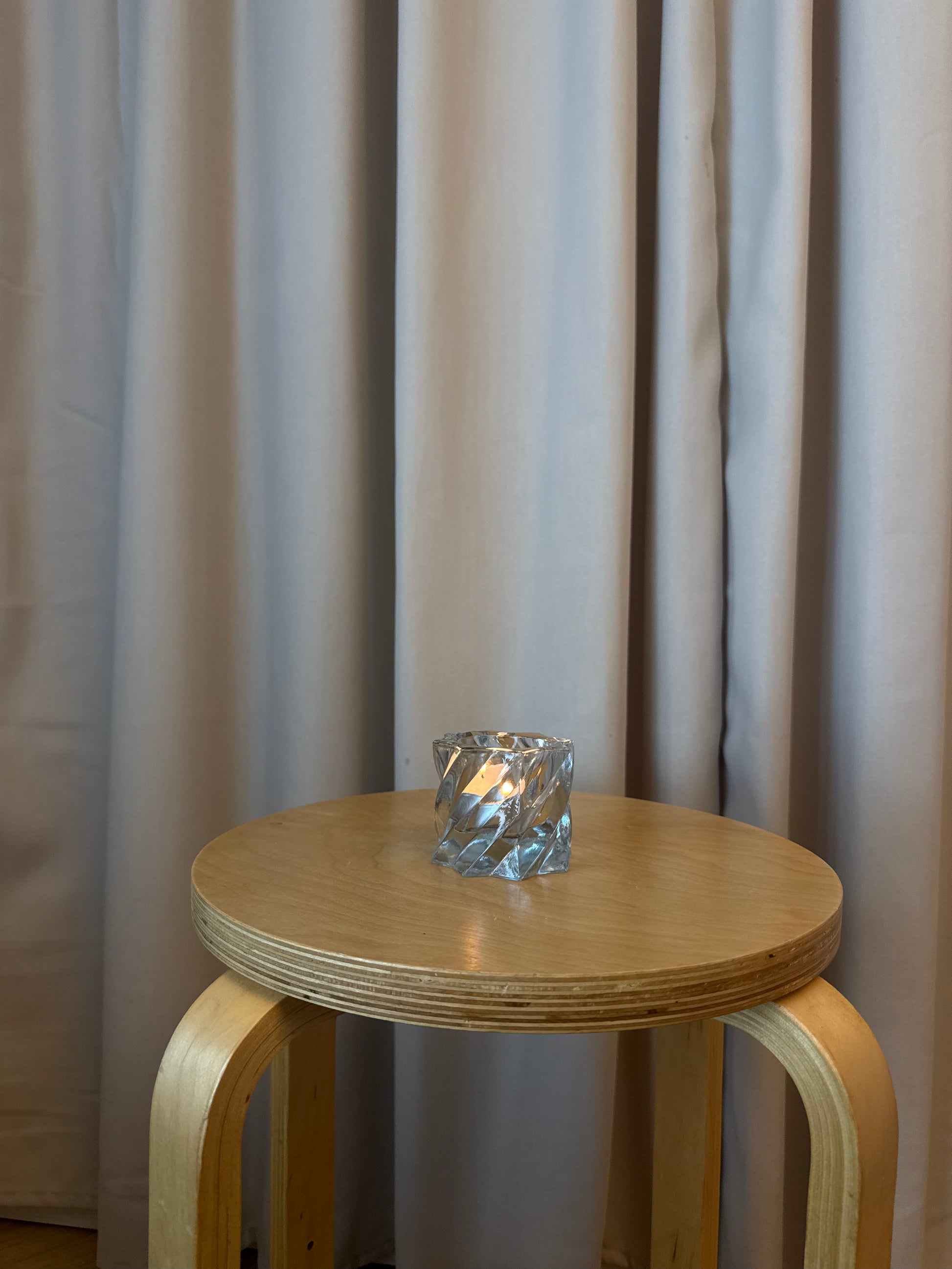 En flot fyrfadslysestage med dekorativt swirl mønster. Glassets bevægelse fanger lyset og skaber et blødt og levende spil, når lyset tændes 🤍