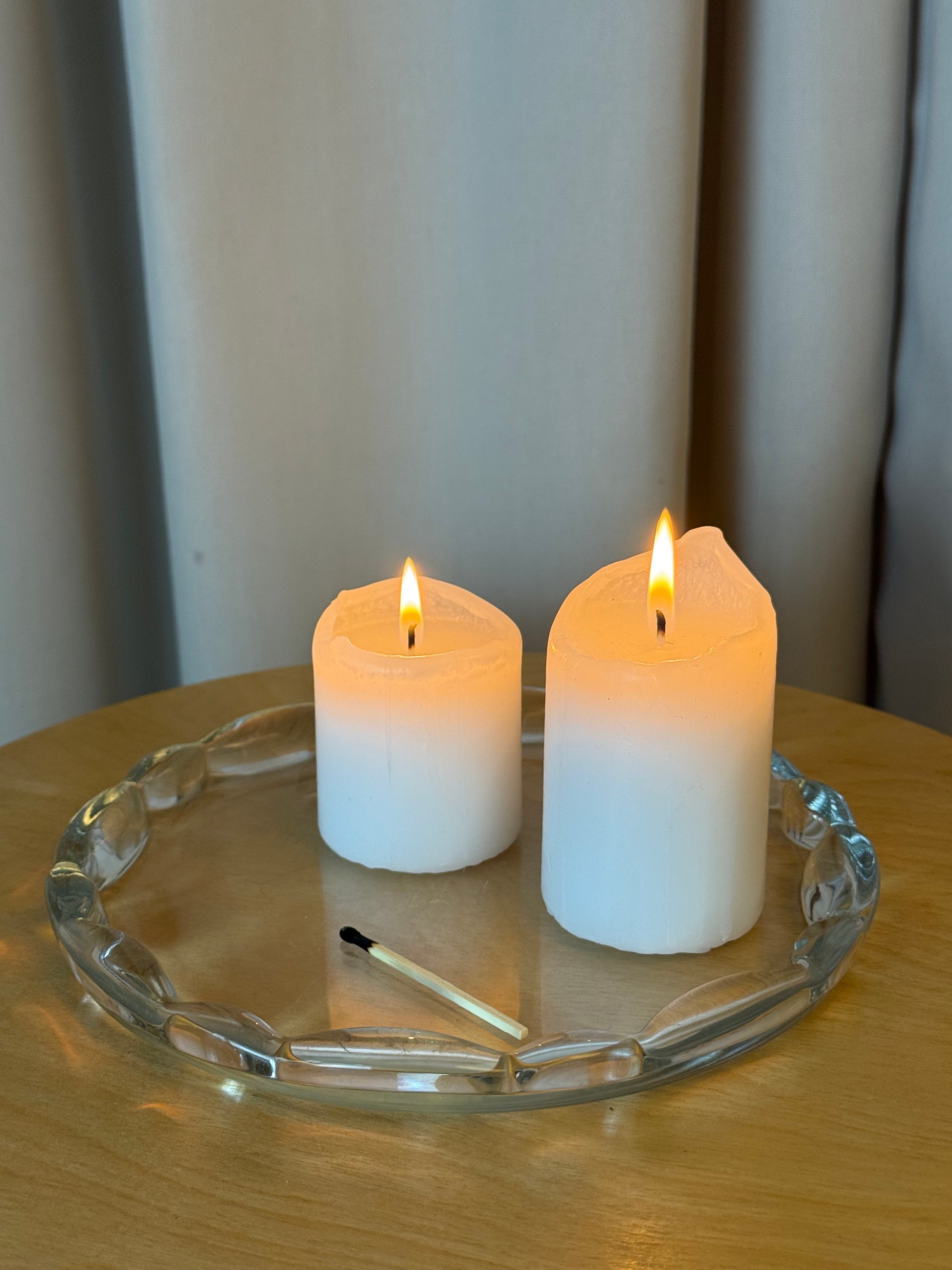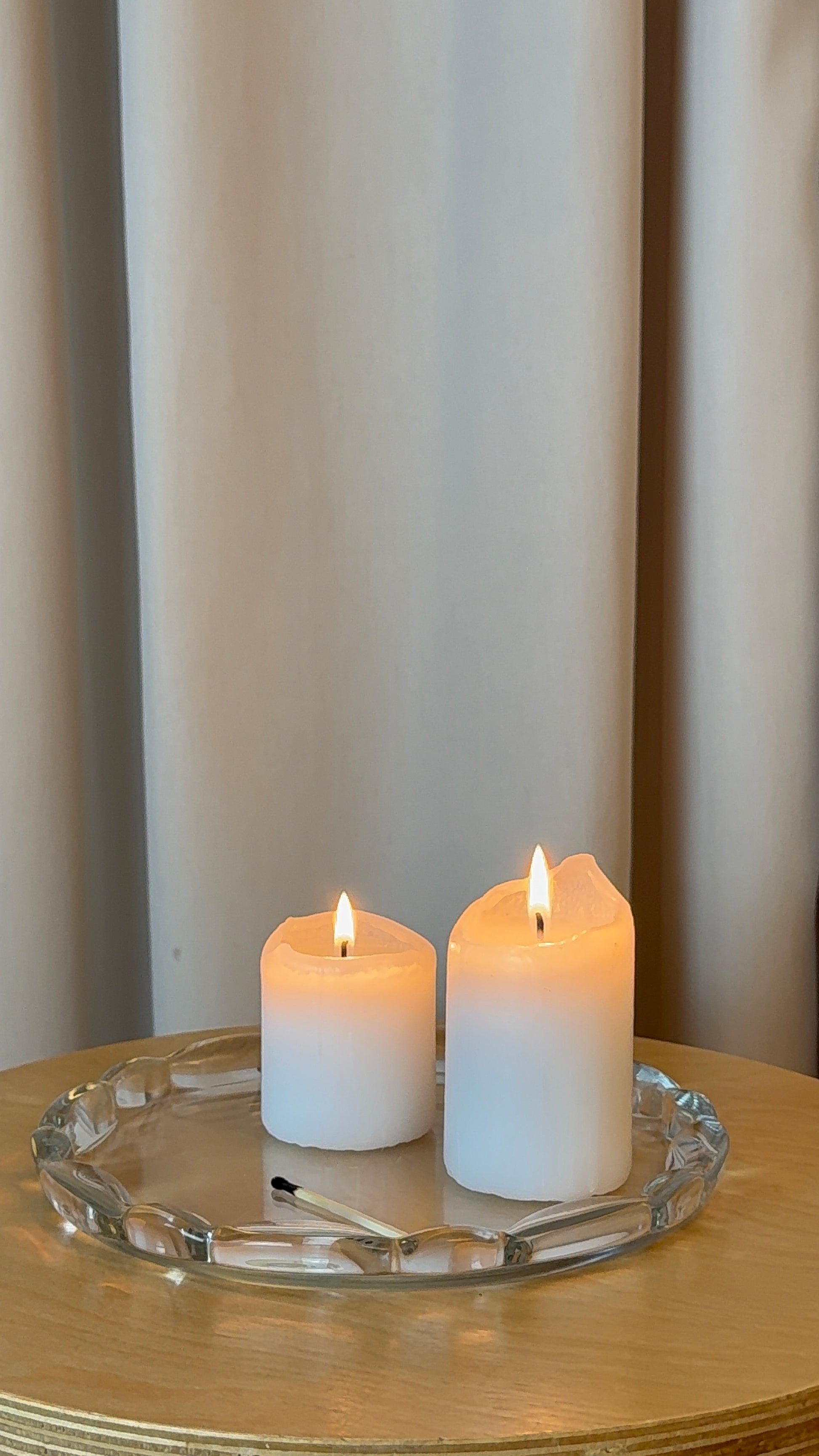 Et smukt glasfad med dekorativ kant, der giver et let og elegant udtryk. Perfekt til lys, små anretninger eller som en fin detalje i indretningen 🤍