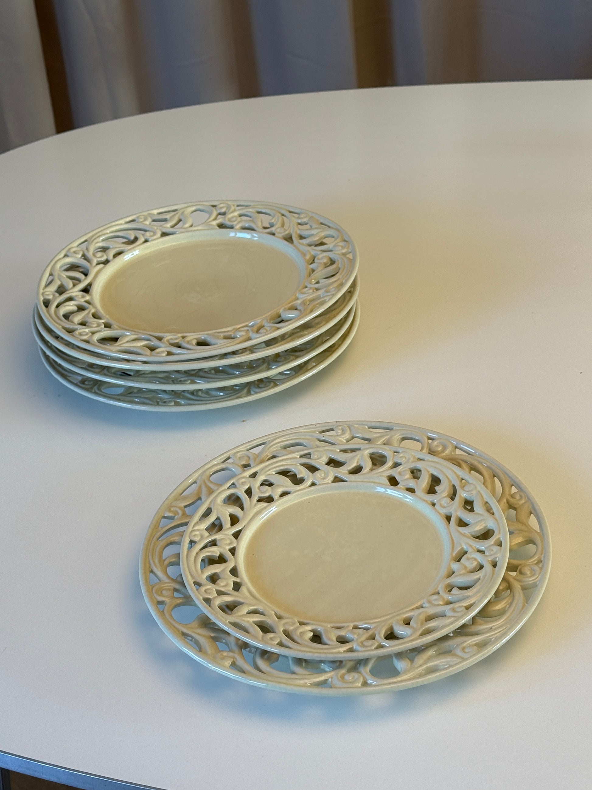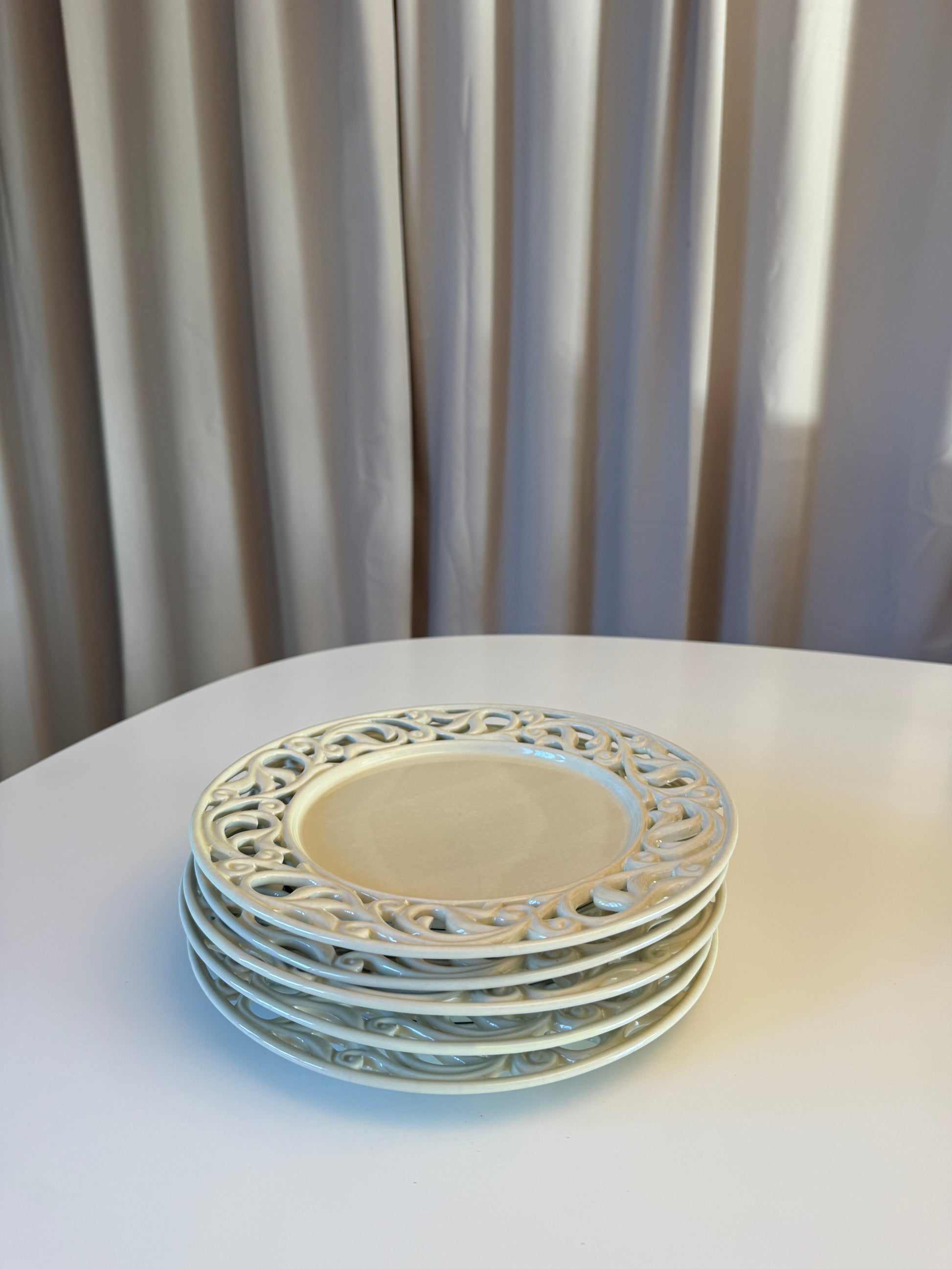 Hvide tallerkener i flot mønster ✨