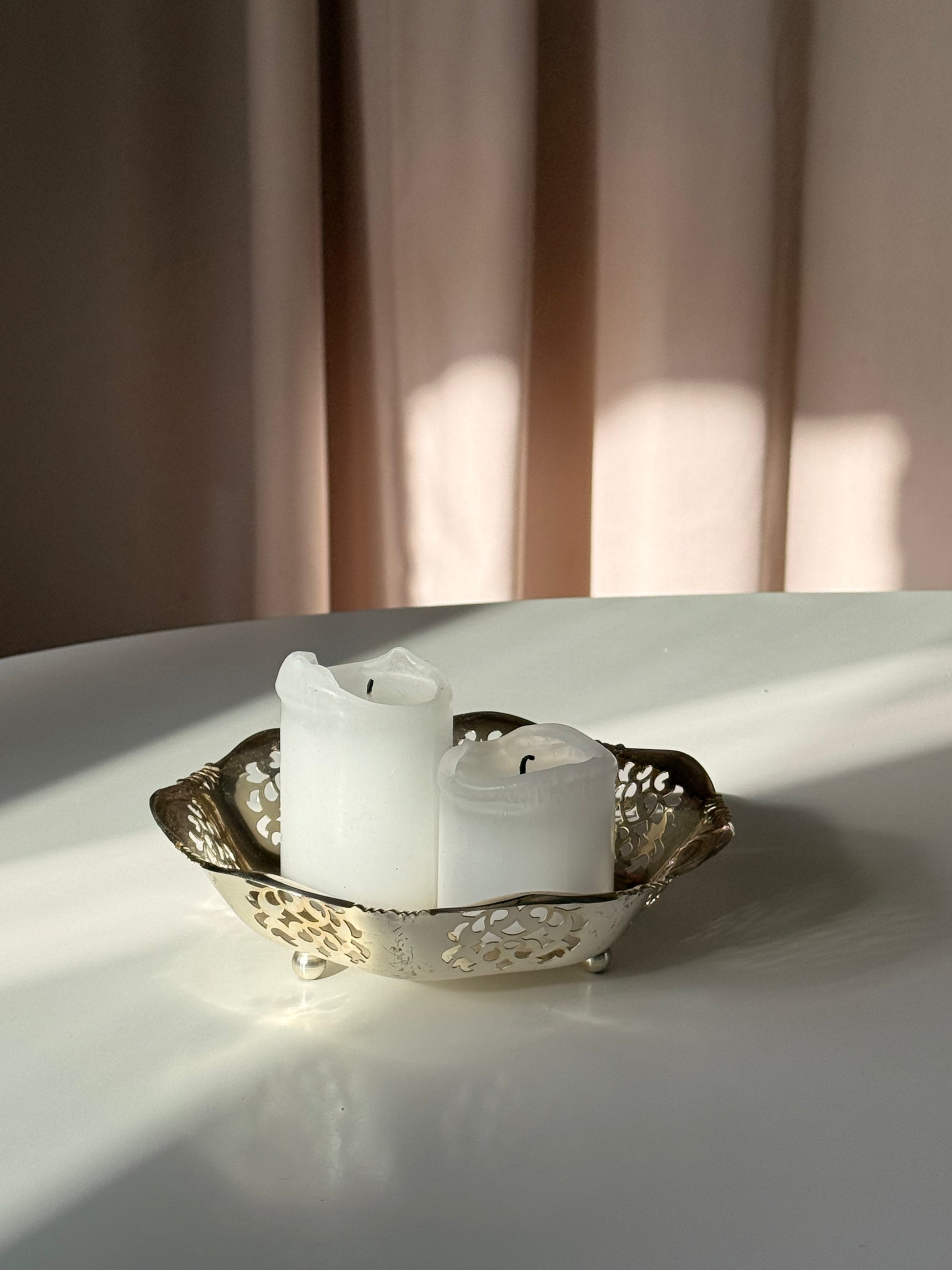 Perfekt som base under et bloklys, hvor mønsteret diskret spiller sammen med lyset og skaber stemning i rummet.