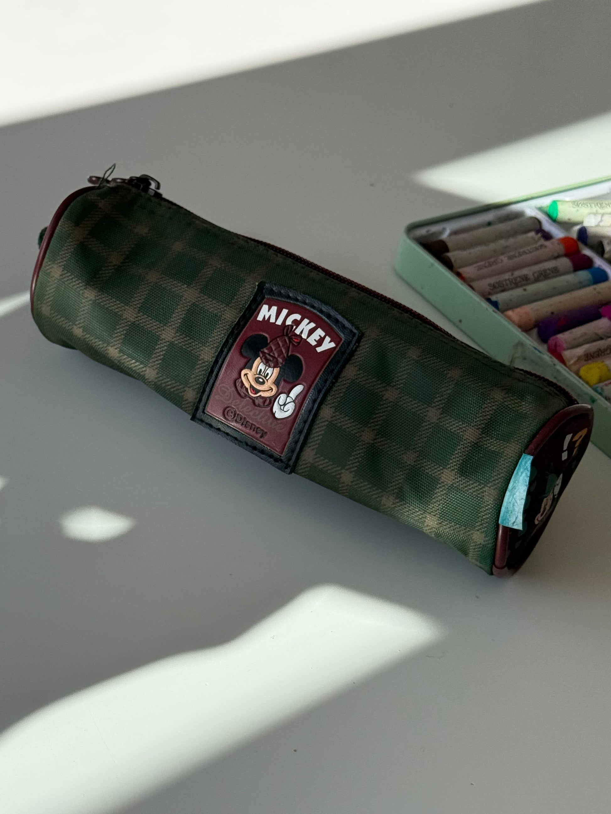 Et rundt retro penalhus med Mickey Mouse – fyldt med barndomsminder og klar til nye tegninger og små hemmeligheder ✨