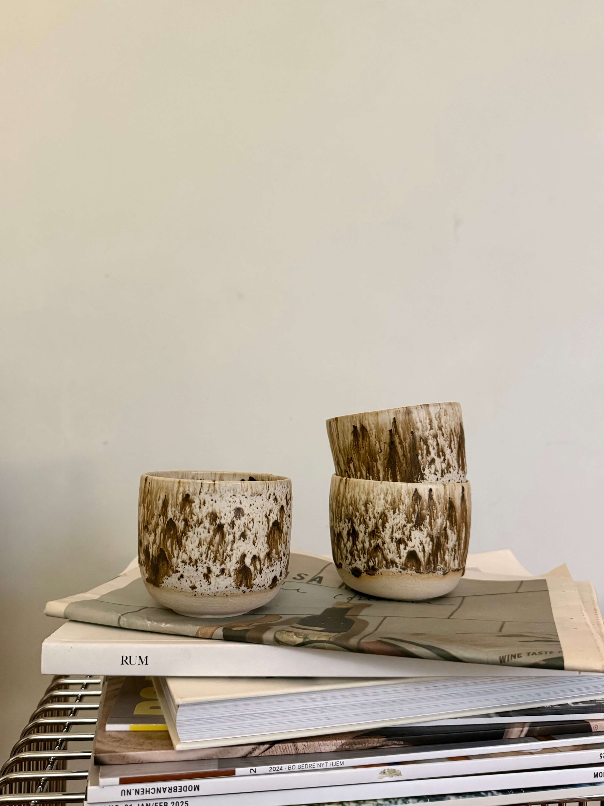 Smukke Splash kopper drejet i hånden af dygtige Camilla Bergqvist Andersen 🤍 Kopperne har en råhvid bund med nuancer af brun som "splash" 🤎 De er så fine i udtrykket, og passer ind i de fleste hjem.