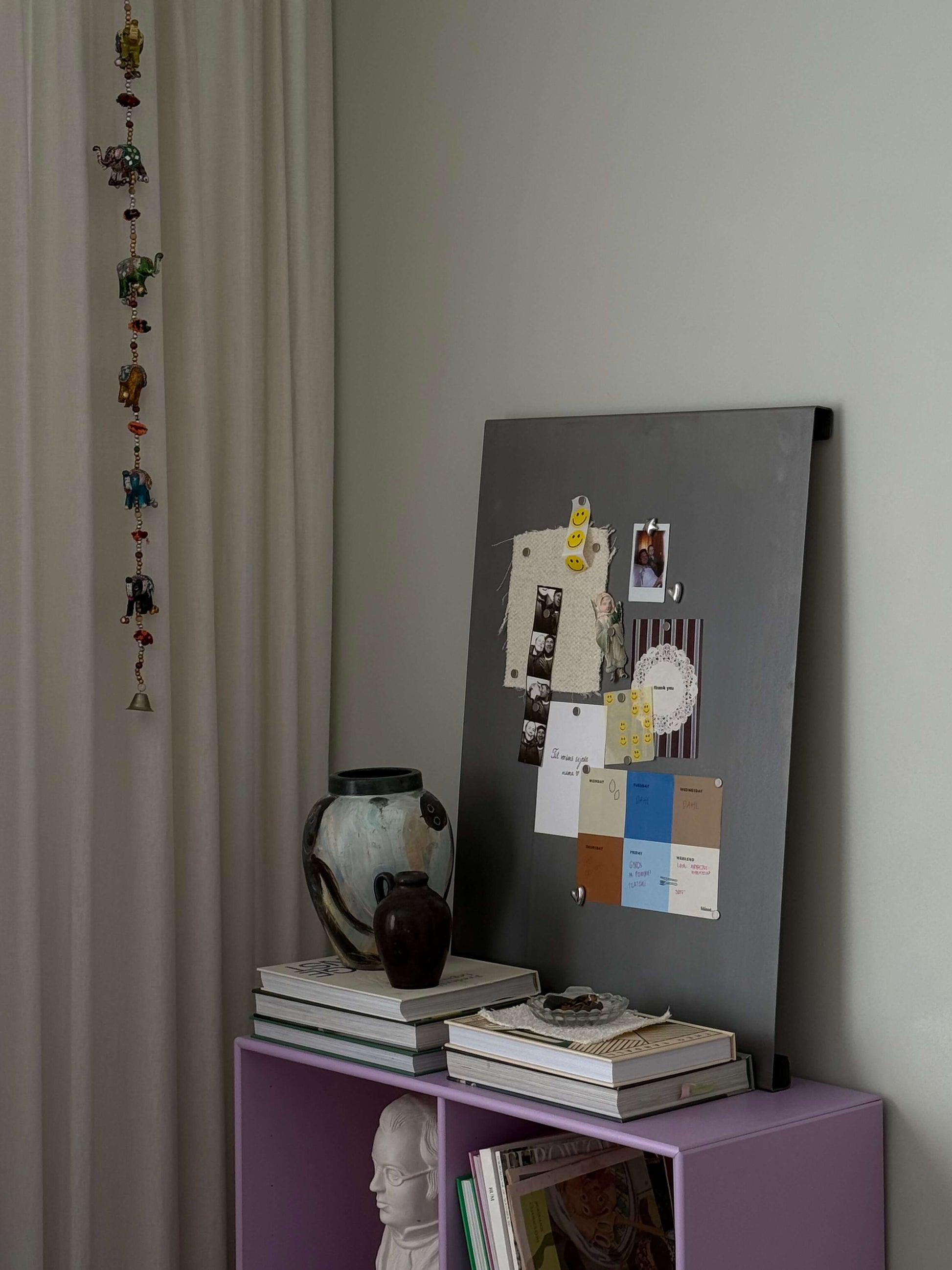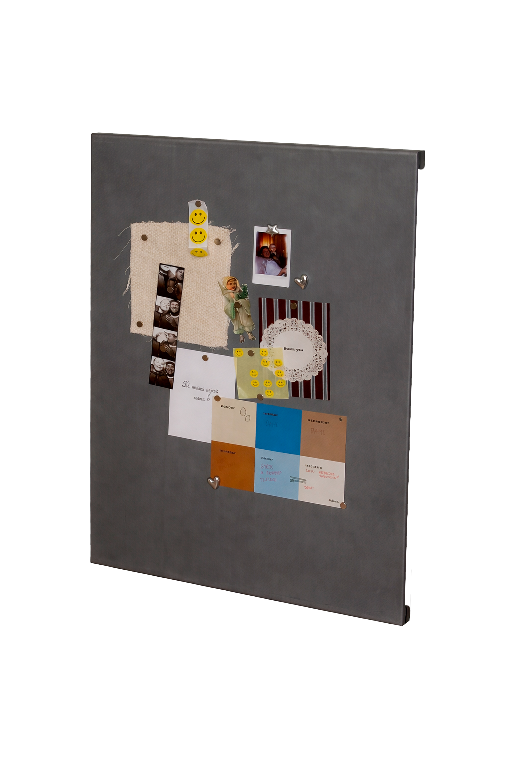 Brug opslagstavlen som dit personlige lærred: hæng vigtige dokumenter op, saml dine idéer, vis børnenes tegninger frem eller hold styr på hverdagens små og store gøremål. Kun fantasien sætter grænser.