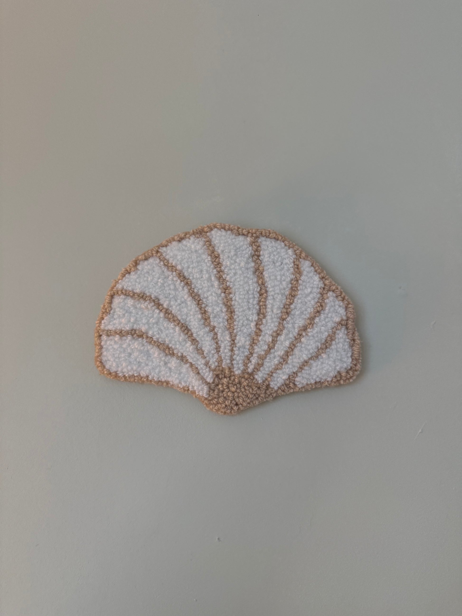 Et smukt tuftet vægtæppe fra Julie Riis, formet som en musling i de fineste beige nuancer. Et enkelt og roligt stykke, der tilfører varme og tekstur til væggen 🤍